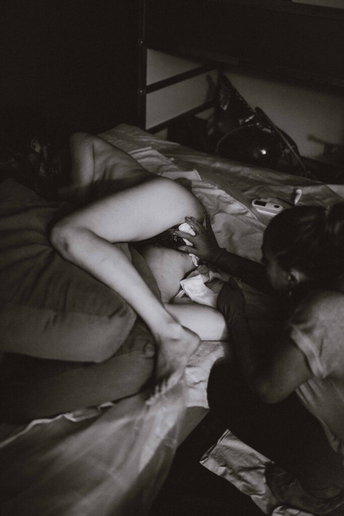 Zależało mi bardzo, żeby nie przegapić najważniejszego. Czułam, że zostało mało czasu, ale dominowała we mnie ekscytacja i radość, że przede mną pierwszy poród domowy. Na miejscu była już położna Agnieszka, która ze spokojem wspierała Zuzę w procesie zaufania sobie, swojemu ciału i temu, że ma wystarczająco siły, aby wydać na świat dziecko. W pokoju obok spokojnie spała 2,5-letnia Dorotka, wokół panowała nocna cisza.