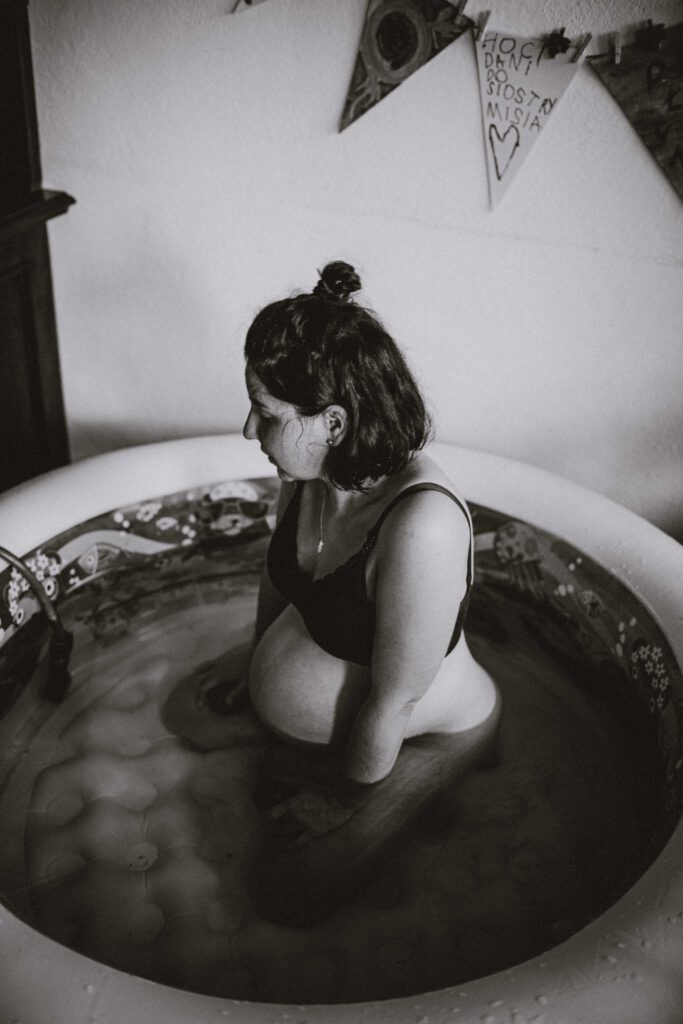 Basia podążając za swoimi potrzebami zdecydowała, że chce wyjść z basenu, co kosztowało ją na tym etapie sporo wysiłku. Skurcze były coraz częstsze.