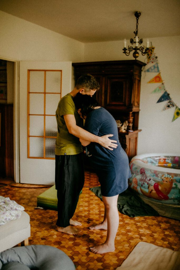 9:00 rano. Idealna godzina na przejazd przez Wrocław, bez korków. Drzwi domu były otwarte, pies niecierpliwił się zamknięty za drzwiami. W salonie zastałam Basię w basenie skoncentrowaną na dość częstych, intensywnych skurczach i Michała, który wspierał ją w jej potrzebach.
